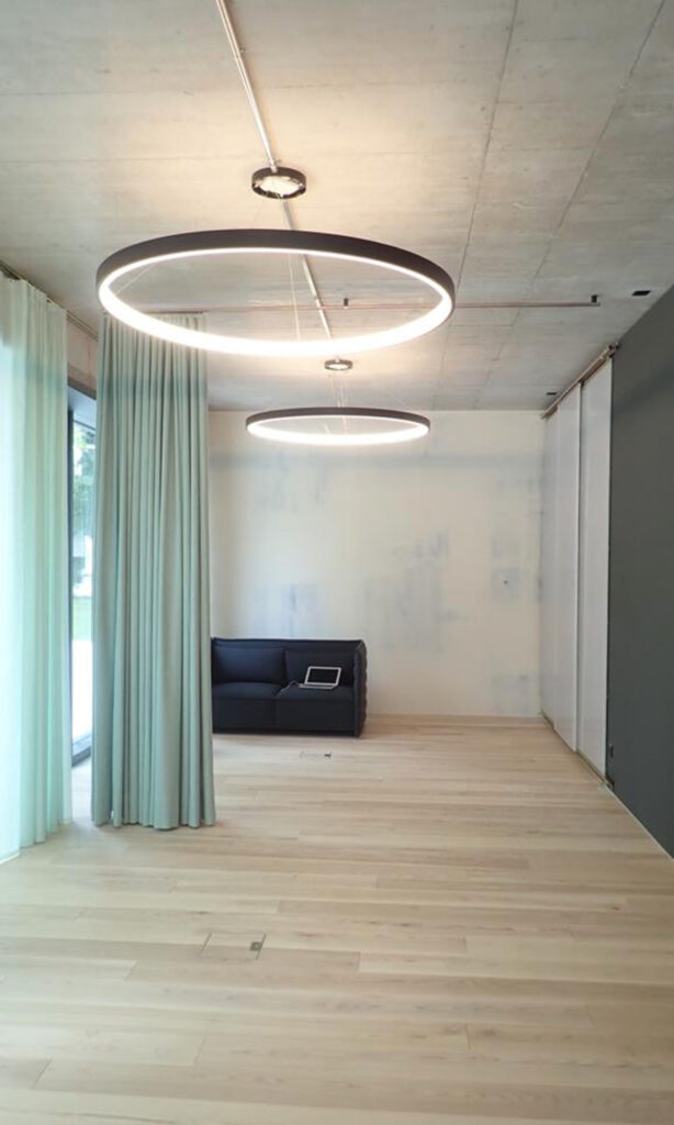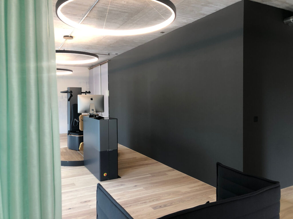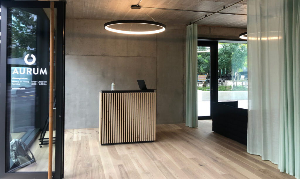 THE SPATIALISTS haben das neue Spacial Identity Design in Zusammenarbeit mit BMCO umgesetzt und im Pilot-Studio in Zug implementiert. Die rohen Oberflächen und Materialien bieten im Zusammenspiel mit warmen Holz-Oberflächen eine überraschend wohnliche Atmosphäre. Da sämtliche Trainingseinheiten an der von Aurum selbst entwickelten Maschine absolviert werden, bleibt viel Raum, welcher mit Textilien in den CI-Farben abgetrennt werden kann.