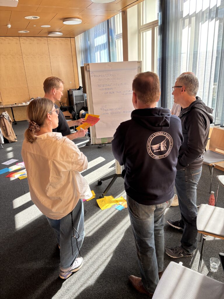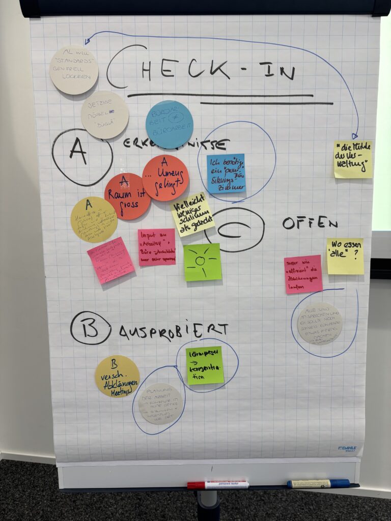 Für das UGZ der Stadt Zürich durften wir einen Transformationsprozess gestalten, der die zukünftige Zusammenarbeit ins Zentrum stellte. In bereichsübergreifenden Workshops wurden Bedürfnisse geschärft, Herausforderungen offen diskutiert und ein gemeinsames Zielbild entwickelt. Die drei tragenden Pfeiler des Prozesses waren Partizipation, Kommunikation und Kompetenzerwerb. Mitarbeitende wurden aktiv einbezogen, Veränderungen transparent gemacht und neue Formen der Zusammenarbeit nicht nur definiert, sondern gemeinsam eingeübt. So entstand Sicherheit im Wandel und Klarheit im Alltag. Besonders spannend war die Auswertung nach rund 1,5 Jahren in der neuen Arbeitsumgebung mit Flex Desks, Team Bases und tätigkeitsbasierten Arbeitszonen. Die Bilanz fiel durchwegs positiv aus: Die neuen Settings wurden angenommen, die Zusammenarbeit funktionierte spürbar besser und die Kultur entwickelte sich weiter. Die klare Erkenntnis: Es wird stets Themen geben, die man noch verbessern kann und wir nennen es lernende Organisation.
