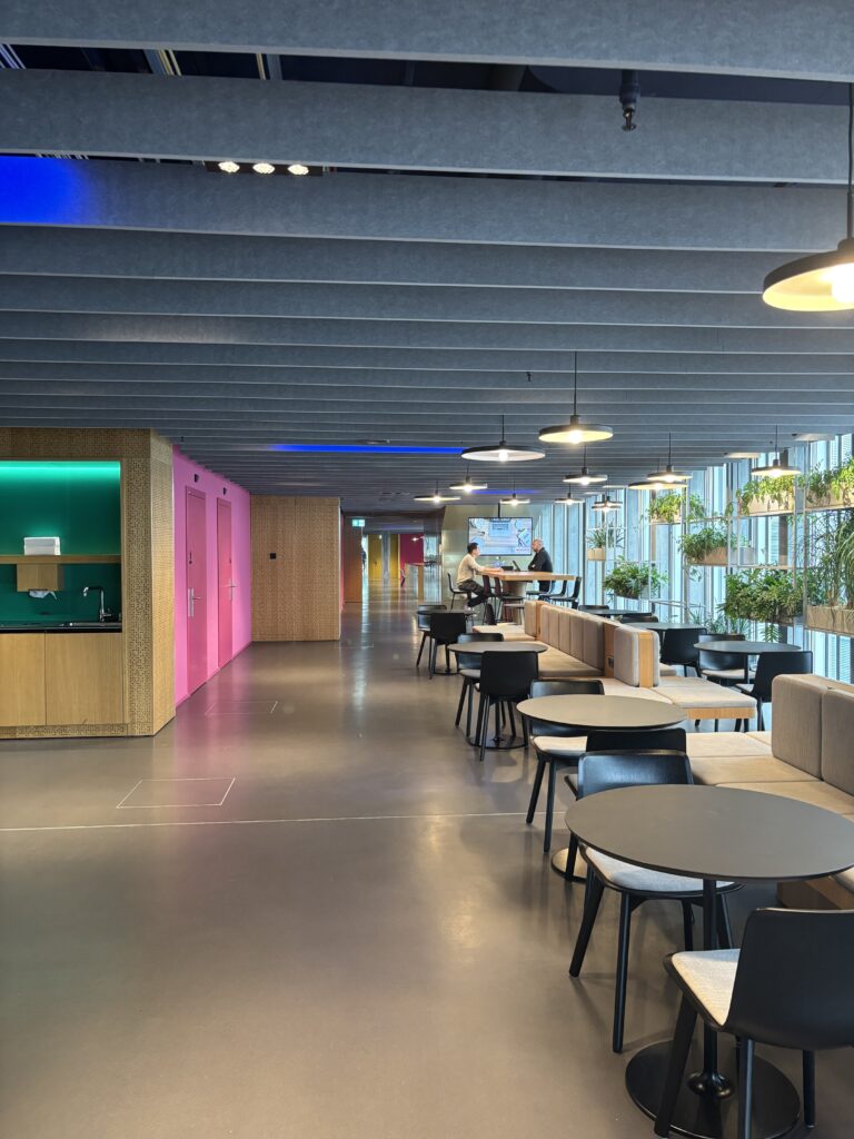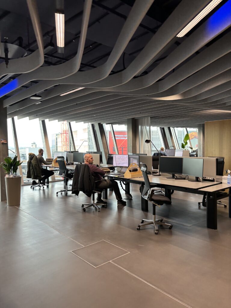 Benchmark für Activity-Based Working in der Schweiz: Mit der neuen Homebase für rund 700 Mitarbeitende im Circle am Flughafen Zürich setzte die Flughafen AG früh ein Zeichen für konsequent aktivitätsbasiertes Arbeiten in der Schweiz. Wir begleiteten das Pionierprojekt in der strategischen Konzeptphase. Gemeinsam schärften wir die Anforderungen an eine zukunftsgerichtete Arbeitswelt und übersetzten Bedürfnisse in ein klares, tragfähiges Raum- und Nutzungskonzept. Wichtige Ergebnisse aus dem Prozess waren die Integration einer verbindenden Haupttreppe als räumliches Herzstück sowie die klare Gliederung der Geschosse in Fokuszonen, Kommunikationszonen und Begegnungszonen.