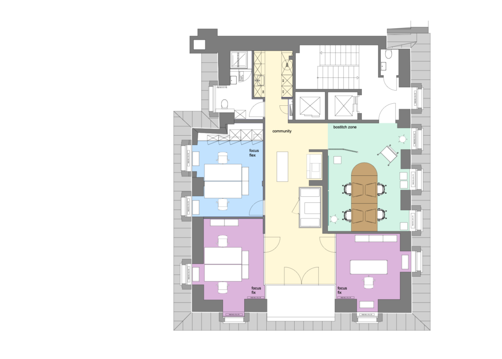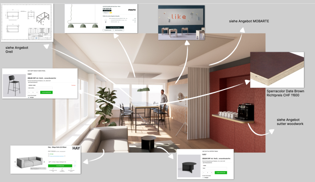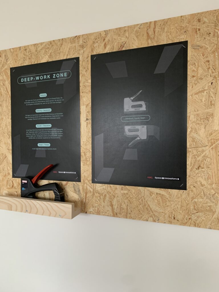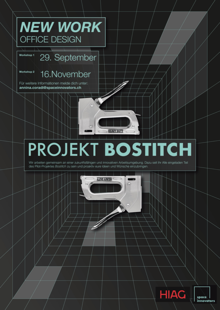Wir haben in partizipatorischer Arbeit ein Pilotprojekt am Hauptsitz entwickelt und dieses direkt mit der Belegschaft prüfen können. Dazu haben wir ein eigens entworfene interne Kommunikations-Leitbild verwendet: Der Bostitch sollte symbolisieren, wie Ideen die Belegschaft zusammenbringen. Wichtig war natürlich, die Investitionen gering zu halten. Um auch die Möglichkeit eines Umzugs zu prüfen, haben wir ein adaptiertes Zonenkonzept auf einen Idealgrundriss angewendet. Mit diesem Projekt konnten wir massgeblich zur Entscheidungsfindung und zu einem reibungslosen Übergang zu einer modernen Arbeitswelt beitragen.