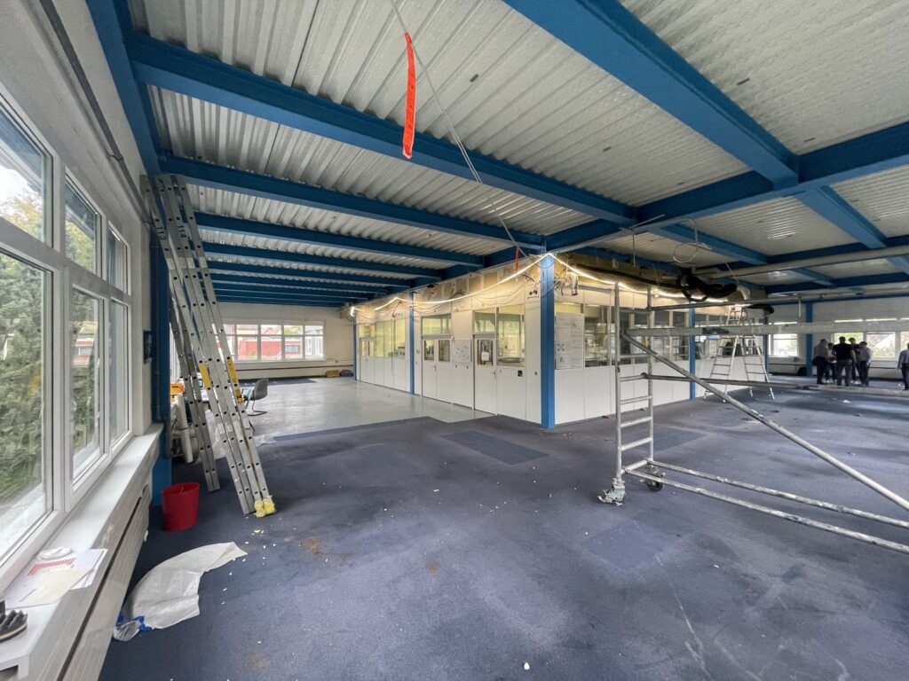 Als wir dazukamen, war die F&E-Etage überfüllt mit Mustern, Werkzeugen und Material – funktional, aber wenig inspirierend. Doch der Fachkräftemangel im Hightech-Bereich ist real. Ingenieur:innen und Forscher:innen erwarten Arbeitsumgebungen, in denen sie selbstbestimmt arbeiten können, in denen alles verlässlich funktioniert und sich der Raum flexibel an ihre Aufgaben anpasst. Genau dafür sollte die F&E-Fläche neu gedacht werden: mehr Innovation, mehr Zusammenarbeit, mehr Sichtbarkeit nach innen und aussen.